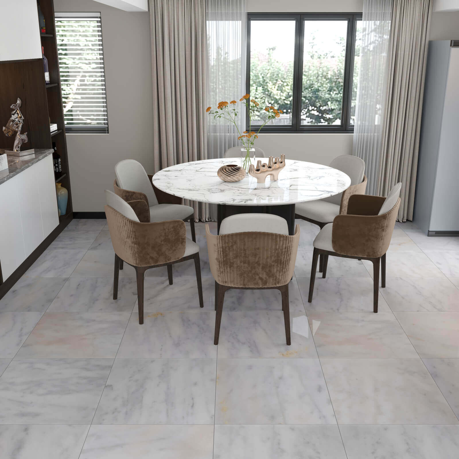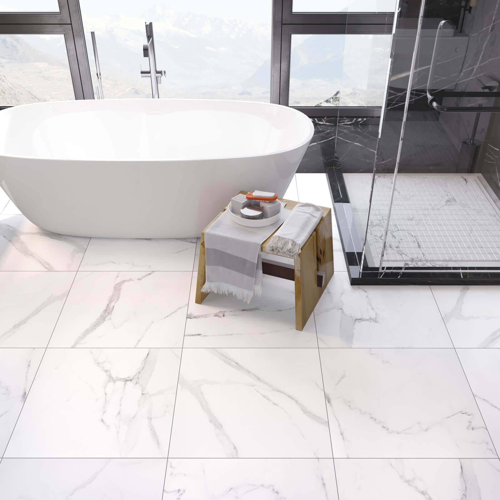 White flooring is and always has been classic, versatile and suitable for decoration with both modern and more rustic nuances. That is, it is not specific to any concept, and can be used without prejudice in any project. You don't even have to stick only with natural marble too when it comes to the colour white, as man-made porcelain tiles also include the brilliant Carrara marble effect porcelain but also the Statuarietto, Cloud white and Arabescato range of porcelain that come with varying patterns and veining effects with the white undertone colour, these are also available in both matt and polished finish.