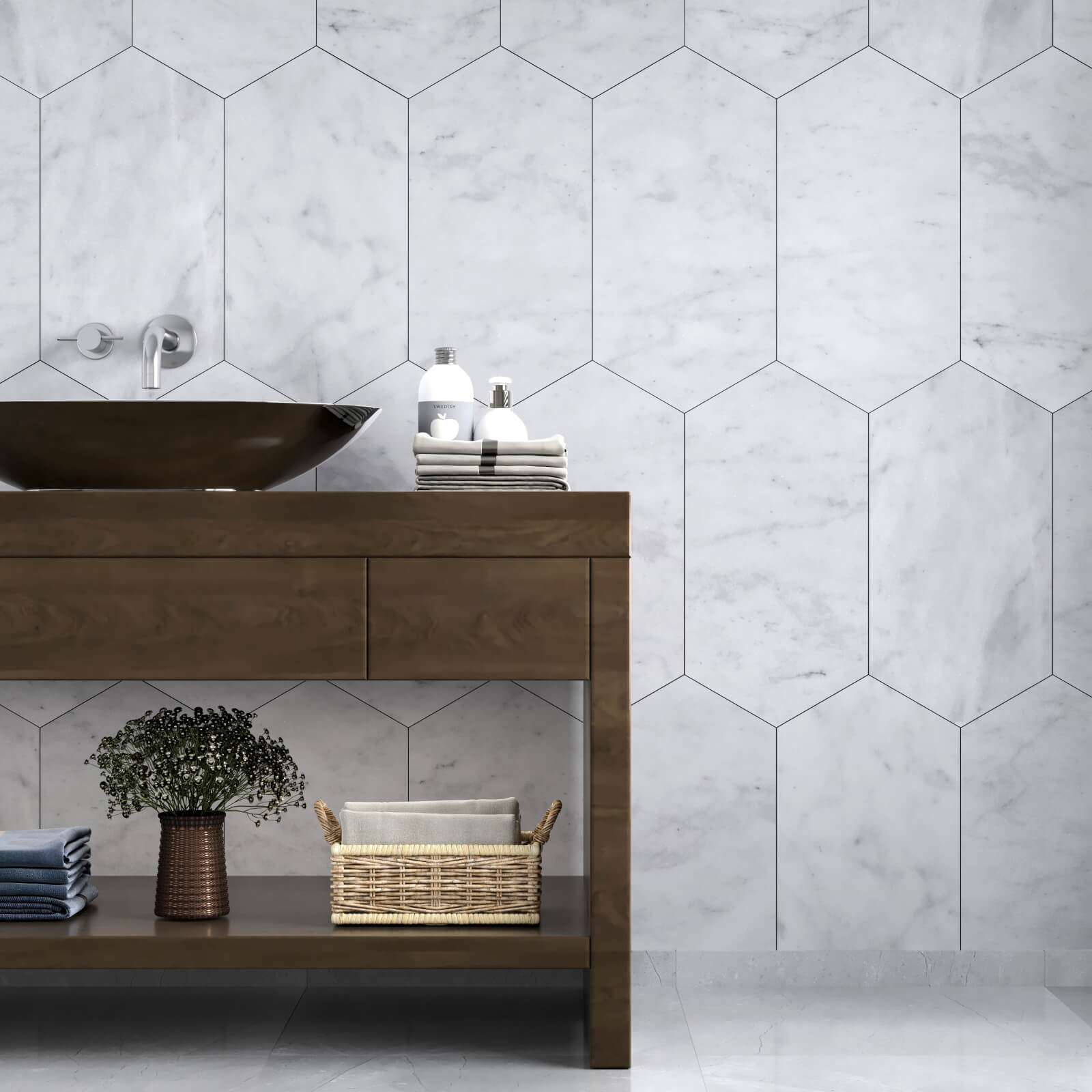 Made from the popular Carrara white marble, these uniquely designed marble tiles offer the most luxurious look at unbelievable prices. Using the latest production techniques, 30x61 cm tiles are cut into a geometric pattern in order to create stunning effects.