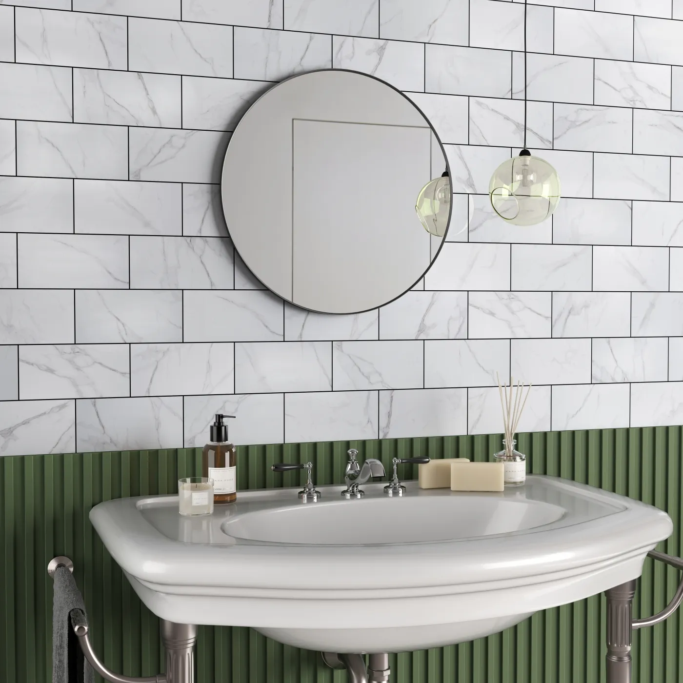 Carrara White Metro Polished Porcelain Tile Rectified Edge