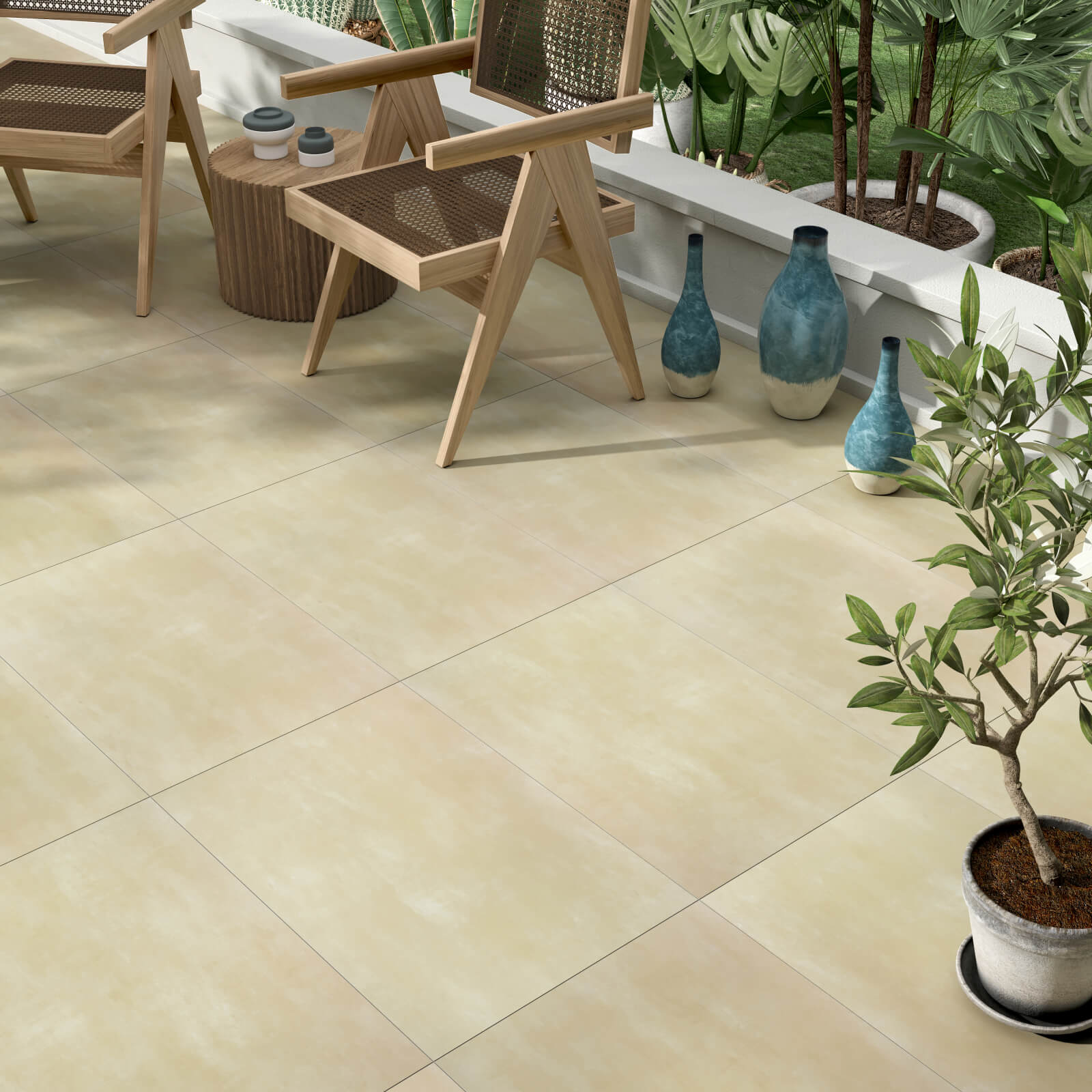 A classic looking sandstone - concrete effect porcelain. These plain tiles are ready to serve from a small area to an entire garden. Durable, tough, they will last for years. York sand tiles also come in 60x90cm rectangular shape which is considered to be a popular size by many.